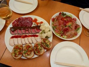 その後京阪電車で京橋まで移動し、忘年会会場「アンピフルリ」へ到着。